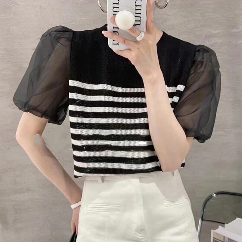 袖のボリューム感とボーダーラインがポイント サマーニット