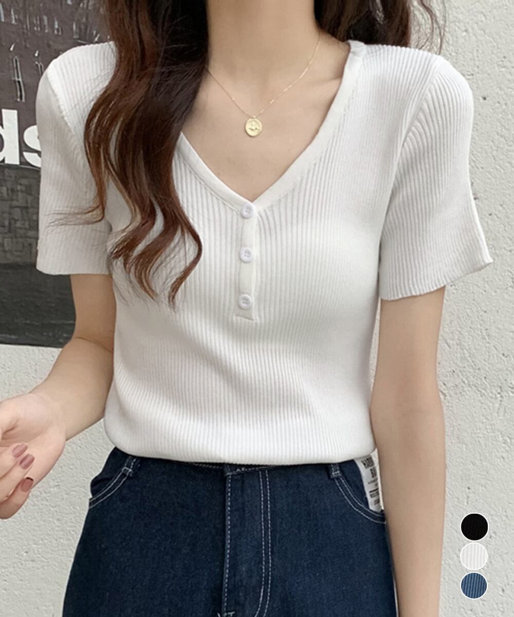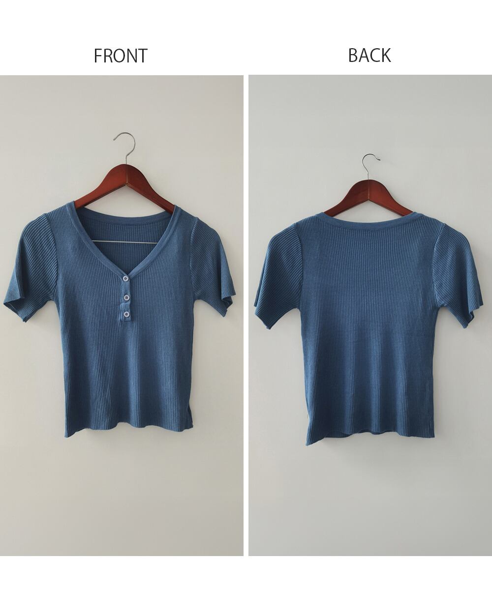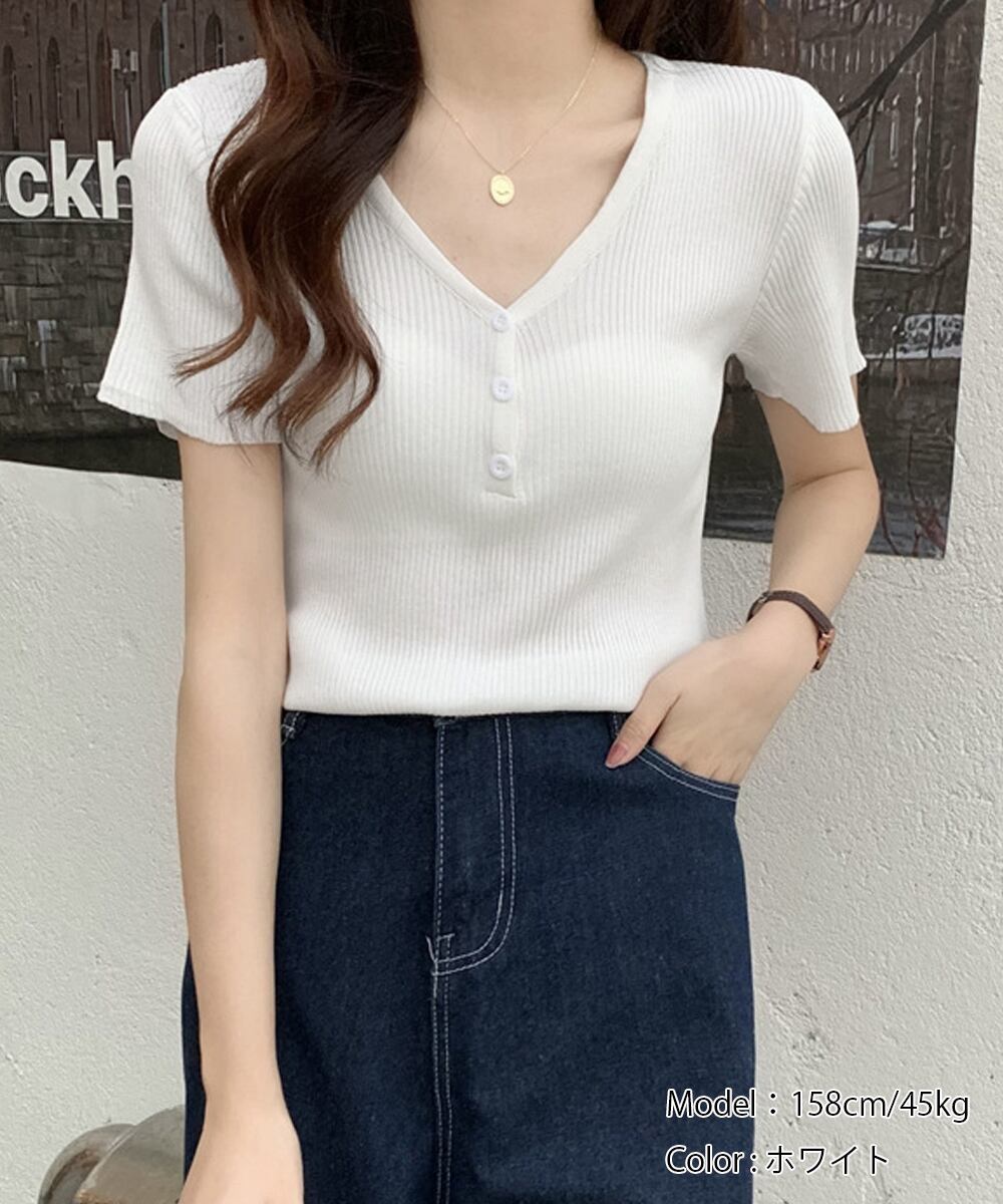 1枚でも重ね着でも着まわし上手な半袖リブニットトップスです