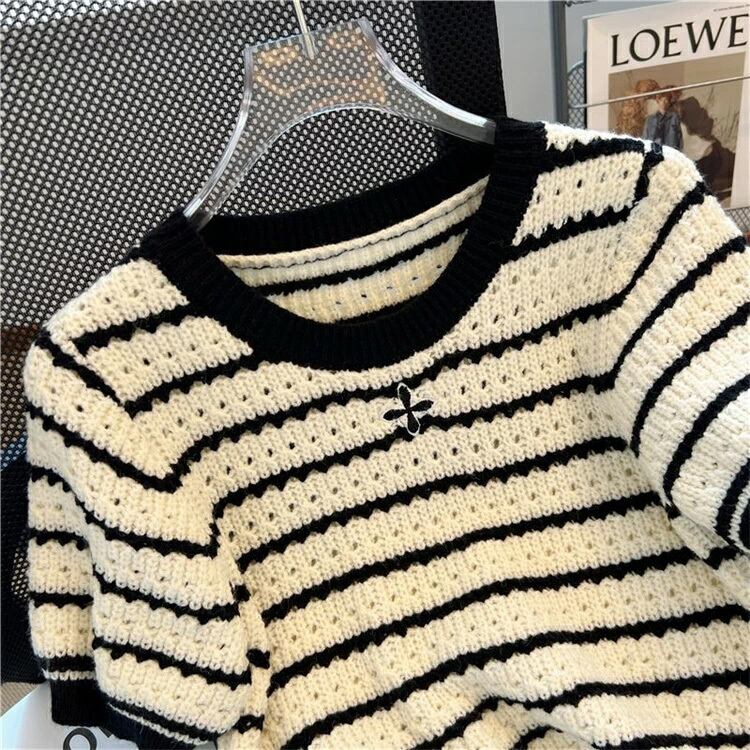 ・1枚でさらっと着こなして大人かわいいボーダ柄半袖ニット。