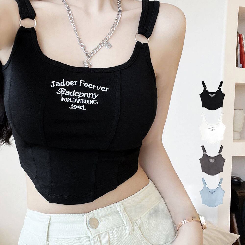 レディース 可愛い クロップド丈トップス へそ出し セクシーキャミソール ロゴ ダンス衣装 おしゃれ夏服ブラ付きインナー