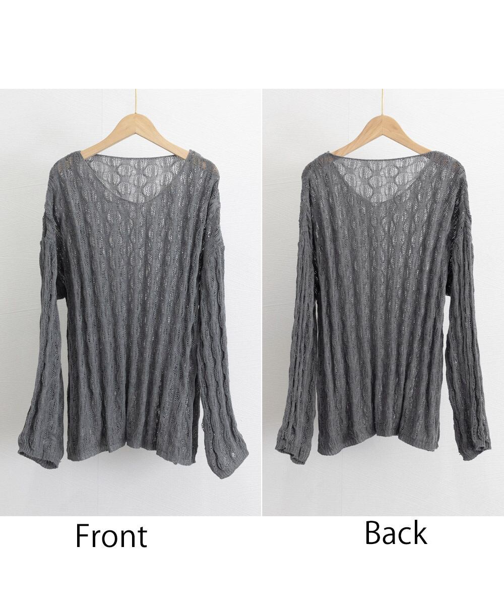 メッシュニット 透かし編みトップス 長袖