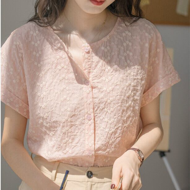 tシャツ 半袖 トレンド ブラウス トップス レディース 春夏新作 刺繍 カジュアル ゆったり 折り返し袖