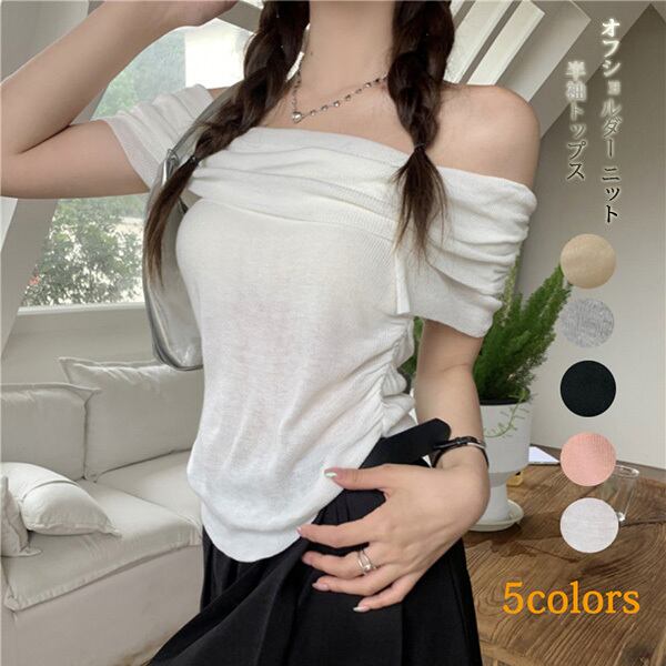 Tシャツ カットソー レディース 肩見せ ショート丈 春 夏 無地 オフショルダー サマーブラウス