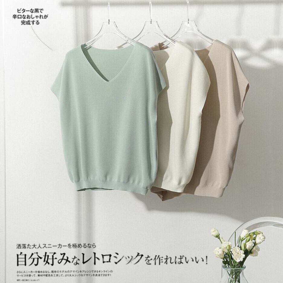 可愛いVネックのニットトップスが入荷致しました。