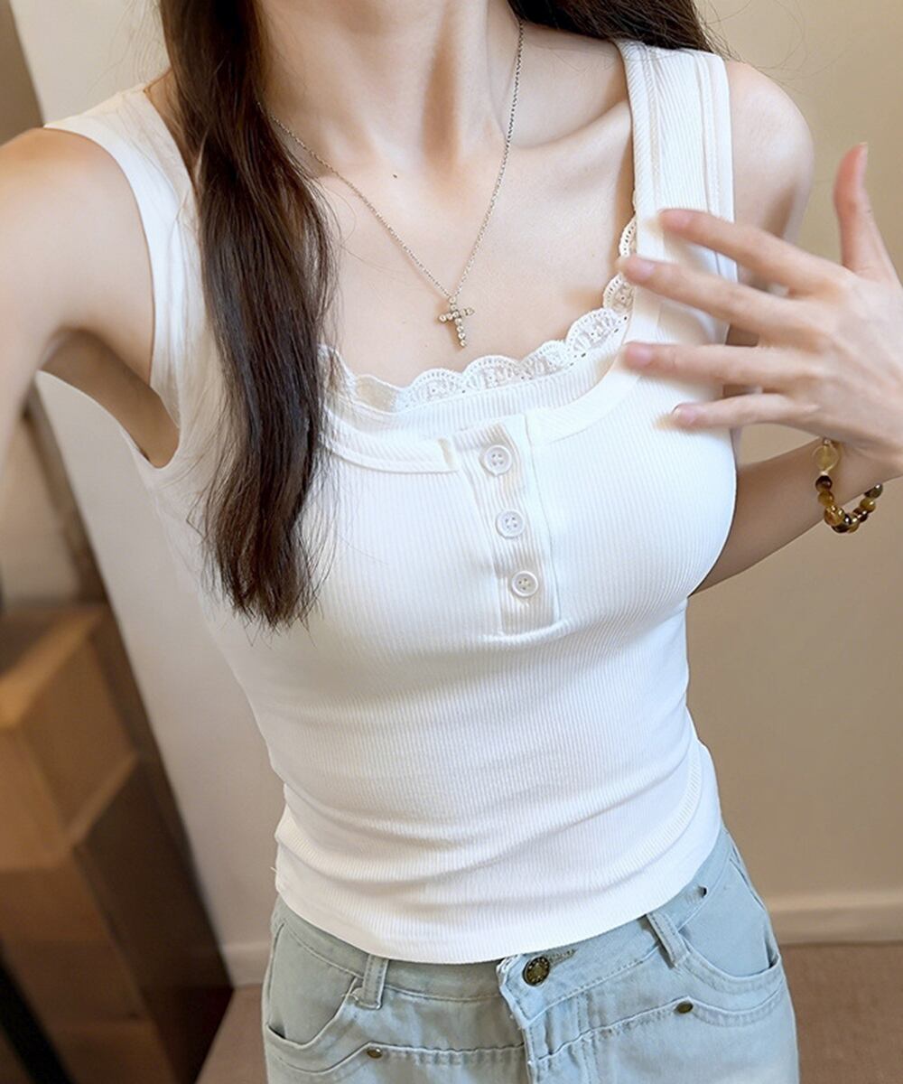 ネックレースタンク 無地サマートップス お洒落見せインナー