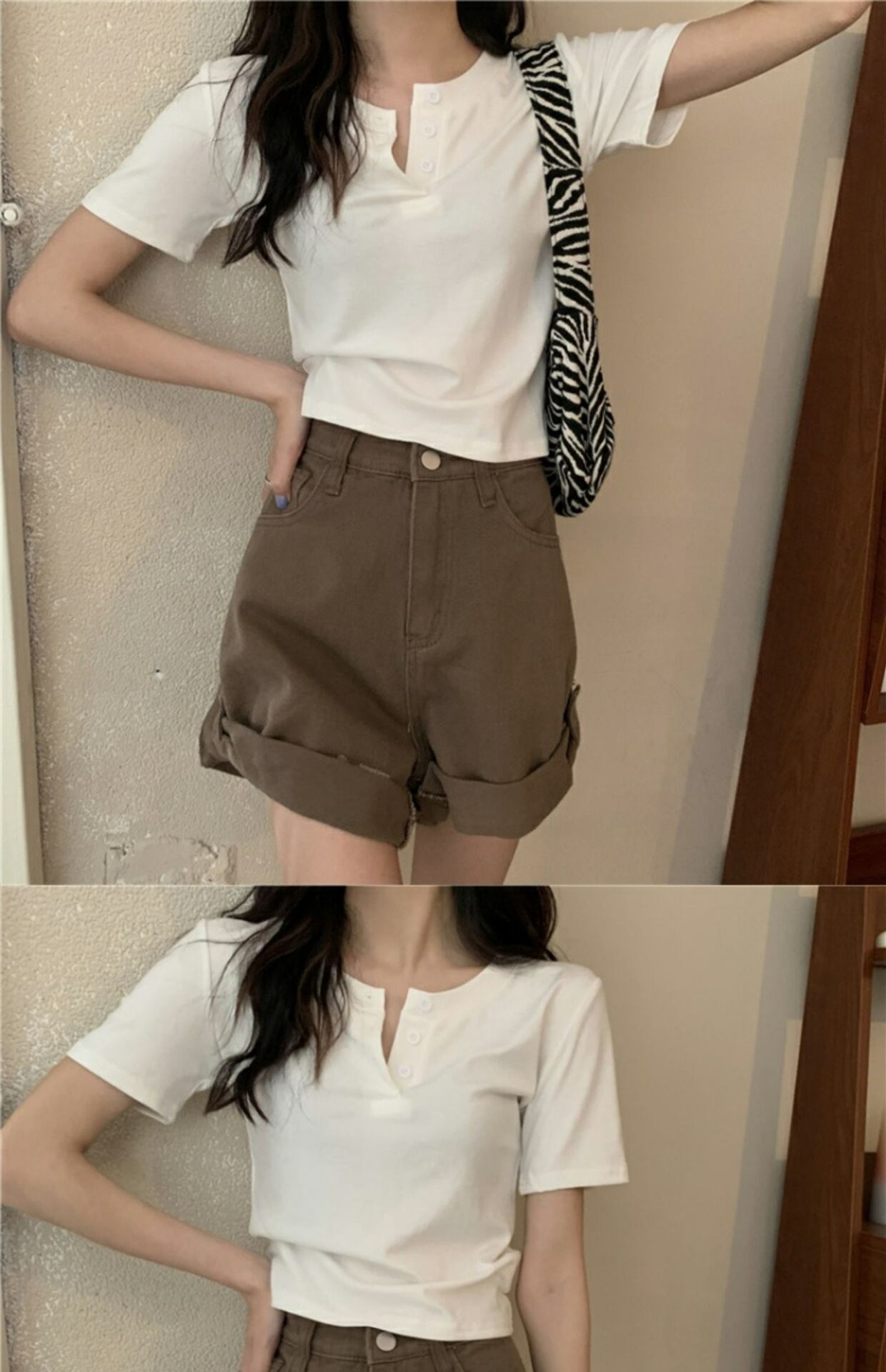 ・ショート丈なのでへそ出しコーデをすることができ、女性らしいセクシーさを出してくれる。