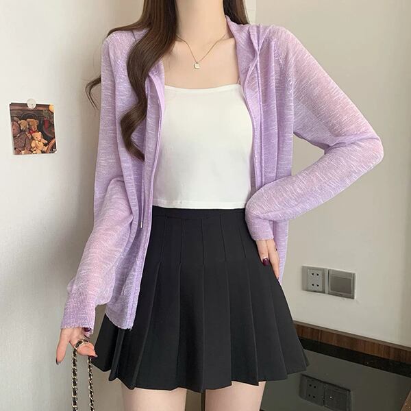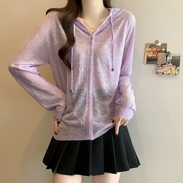 レディース シアー パーカー カーディガン 羽織 冷房対策 紫外線 UV フード付き