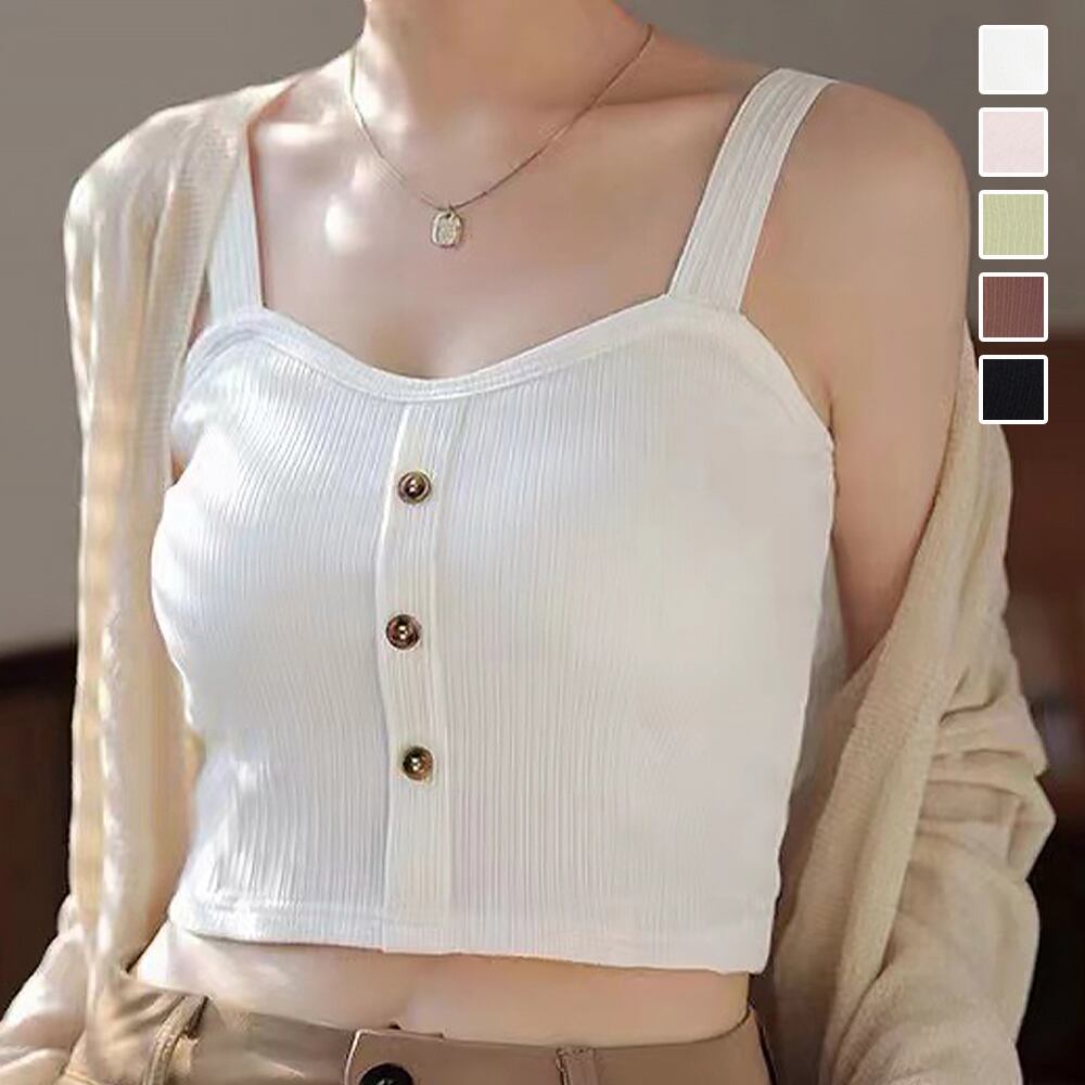 ブラキャミ ブラトップ トップス へそ出しキャミ ボタン セクシー 肌着 無地 カジュアル 胸元 大人 おしゃれ