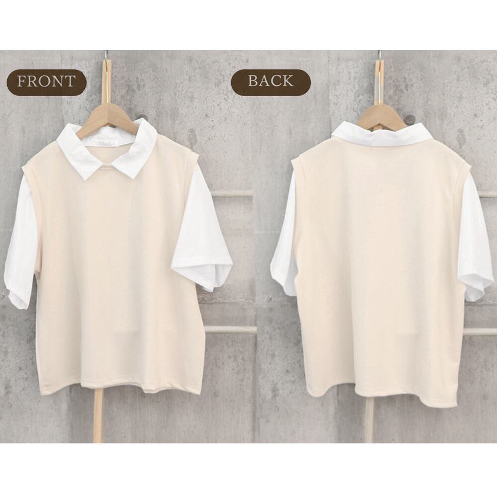 半袖カットソー通学 オフィスカジュアル 重ね着風Tシャツ夏