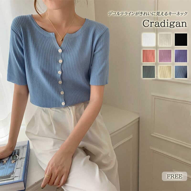 レディース リブニットカーディガン 半袖 サマーニット トップス 細リブ