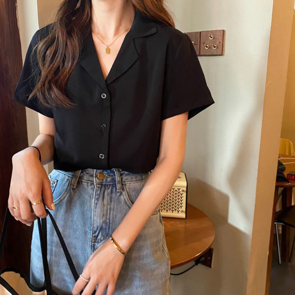 オープンカラーシャツ 無地 シャツブラウス Vネック サマージャケット 薄手 半袖テーラードジャケット 羽織り