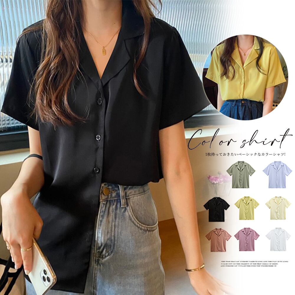 カラー開襟シャツ レディース 韓国風