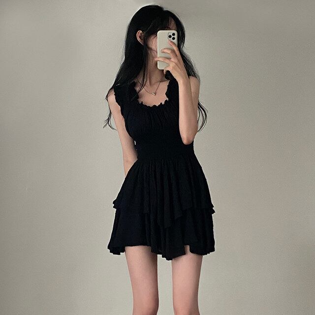 女 レディース 袖なし 無地 ミニ ワンピース ドレス 台型スカート