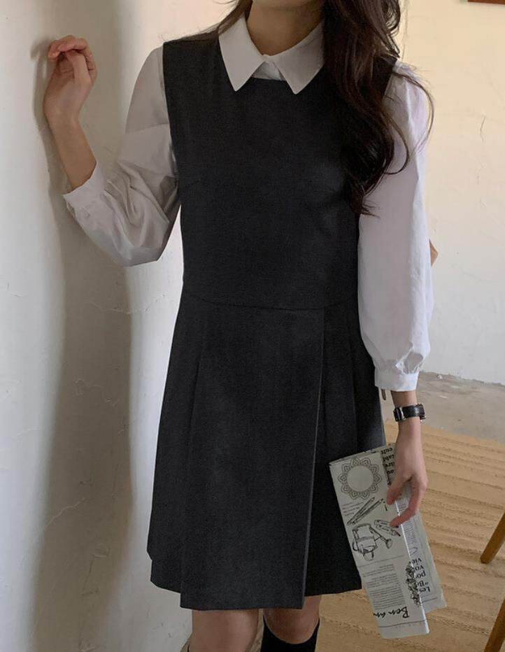 女 レディース 袖なし サロペットスカート ミニ ワンピース ドレス プリーツスカート