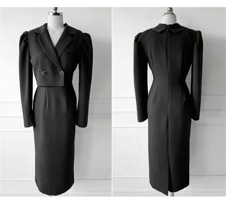 タイトなヒップライン スーツカラー ロング丈ワンンピース 秋ファッション