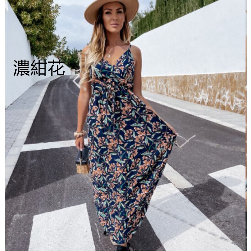 リゾート感あふれるロング丈花柄ワンピースです。夏の海やリゾート地におすすめです。マキシ丈が大人な女性の印象に。Vネックの胸元はデコルテを美しく見せ、ネックを長く、華奢に見せます。