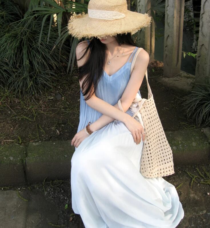 レディース 袖なし 吊りスカート ロング ワンピース 台型スカート