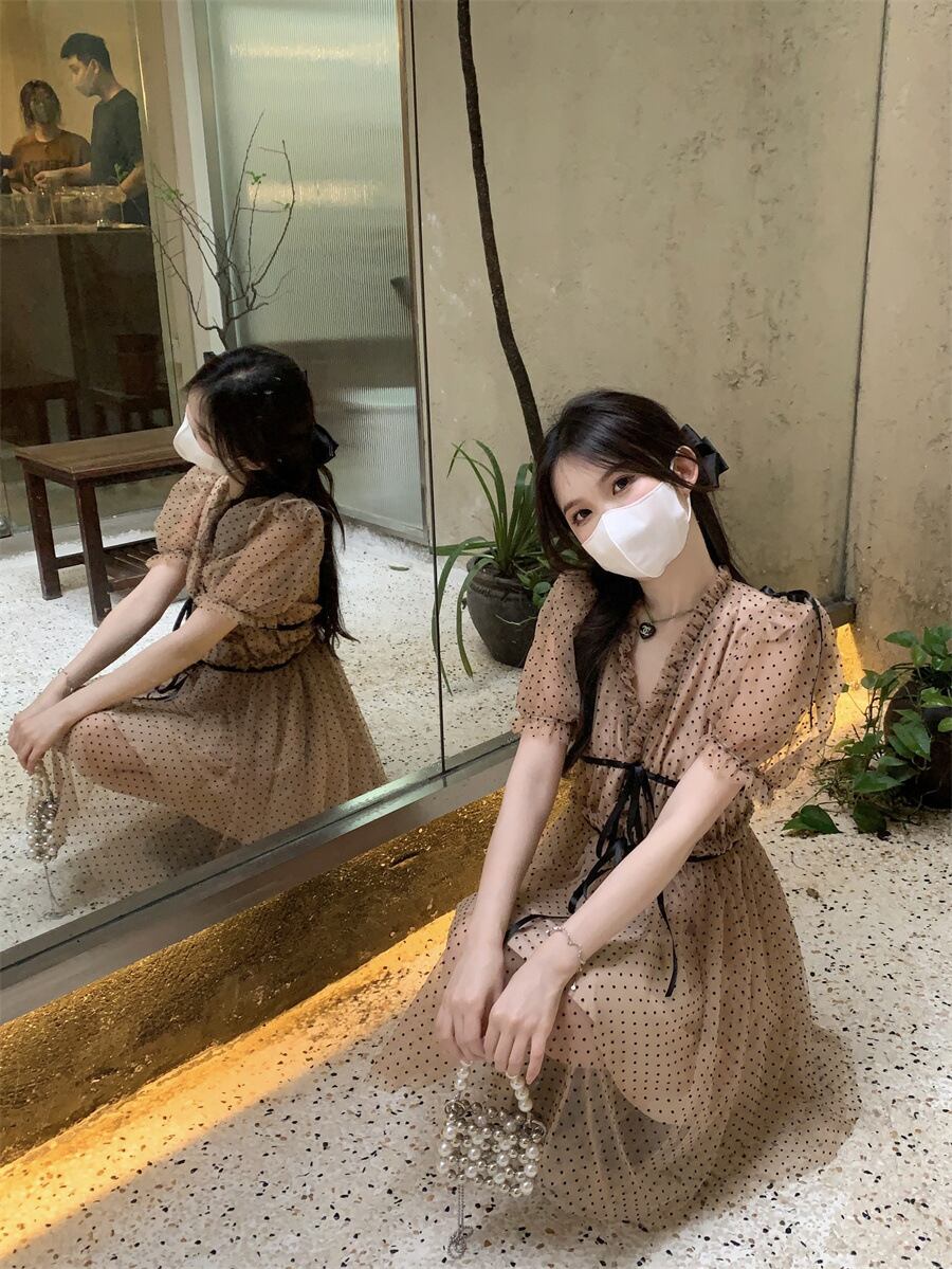 レディース 半袖 ドット チュール ミニ ワンピース ドレス 台型スカート