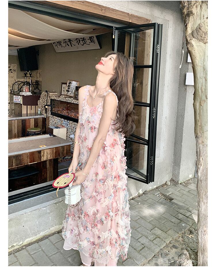 ガーリーな立体フラワーサスペンダーワンピース レディース
