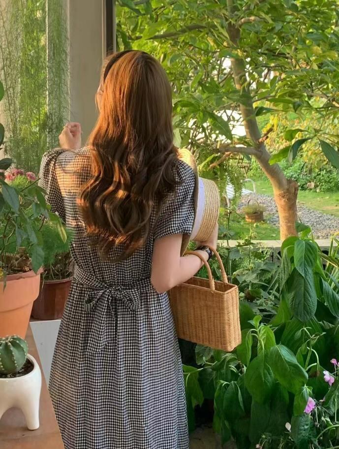 レディース 半袖 チェック柄 ロング ワンピース 台型スカート