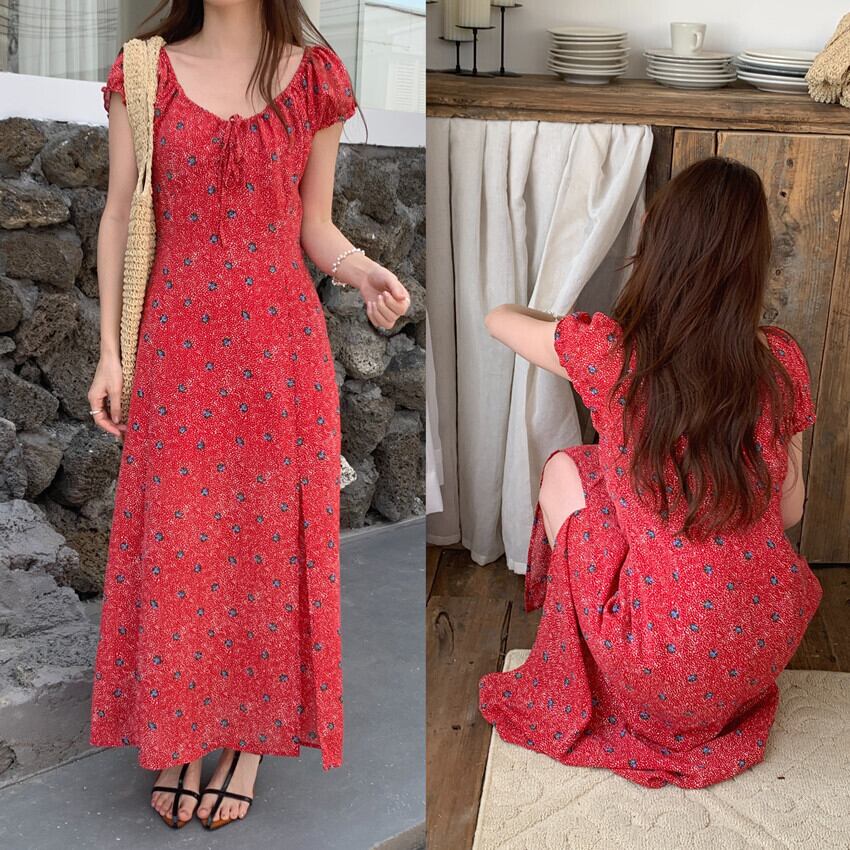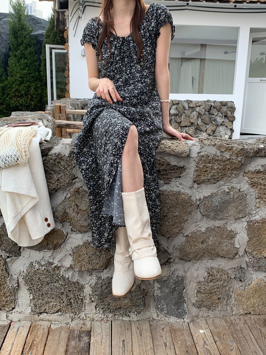 レディース 半袖 花柄 ロング ワンピース 台型スカート