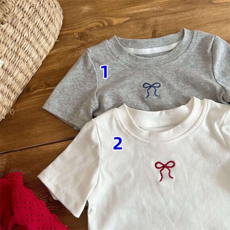 韓国風子供服 トップス 半袖 丸首 刺繍 Tシャツ インナー 子ども服