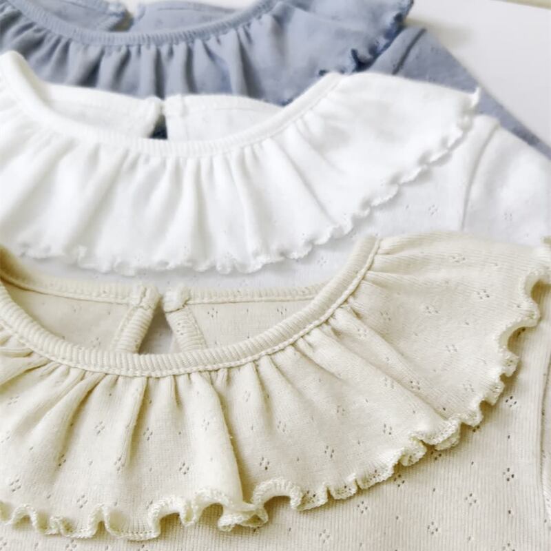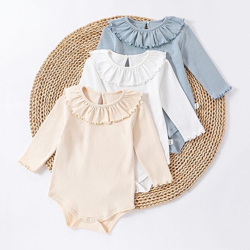 ベビー服 新生児 フリル 長袖 ロンパース 可愛い 柔らか 無地 3色 部屋着 子供服